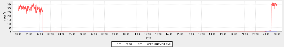 avg(dm-1 read) = 36.00 avg(dm-1 write) = 0.17
