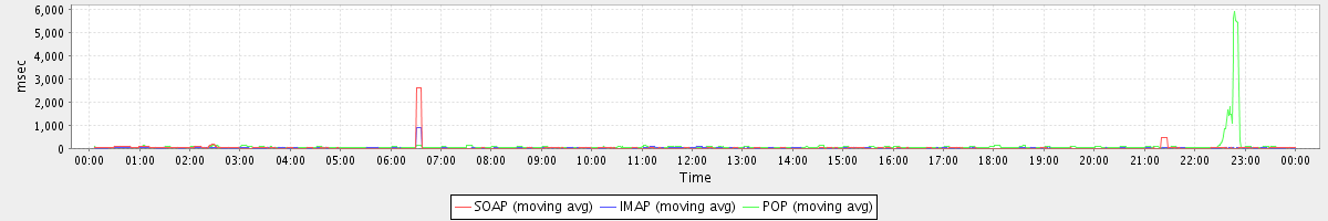 Host zm03.stanford.edu: Mailboxd: Response Time by Client Protocol