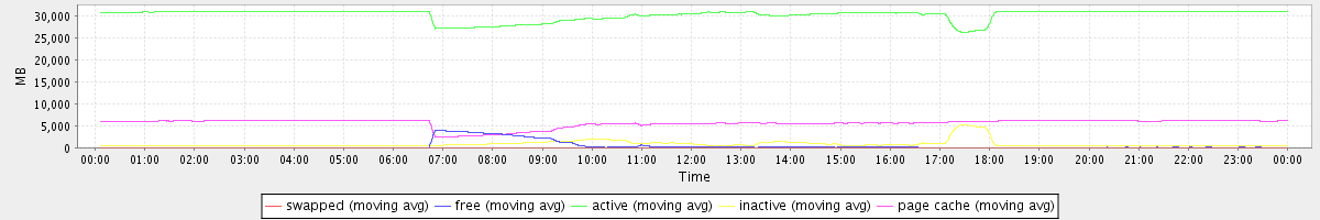 avg(swapped) = 0.25 avg(free) = 435.14 avg(active) = 30198.36 avg(inactive) = 869.67 avg(page cache) = 5593.39