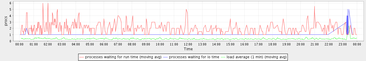 avg(processes waiting for run time) = 0.35 avg(processes waiting for io time) = 0.02 avg(load average (1 min)) = 0.35