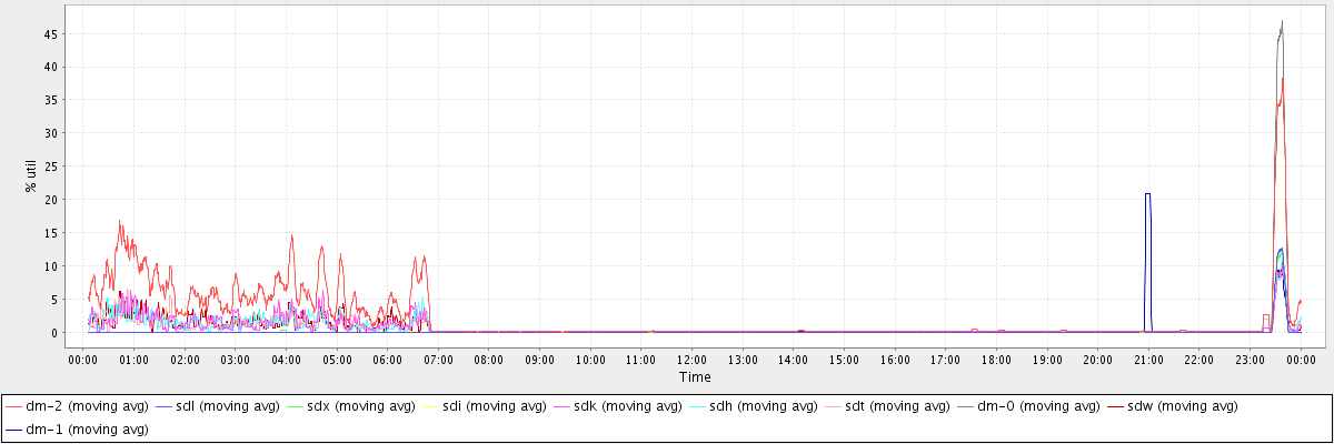 avg(dm-2) = 2.25 avg(sdl) = 0.11 avg(sdx) = 0.11 avg(sdi) = 0.11 avg(sdk) = 0.60 avg(sdh) = 0.58 avg(sdt) = 0.54 avg(dm-0) = 0.41 avg(sdw) = 0.60 avg(dm-1) = 0.18