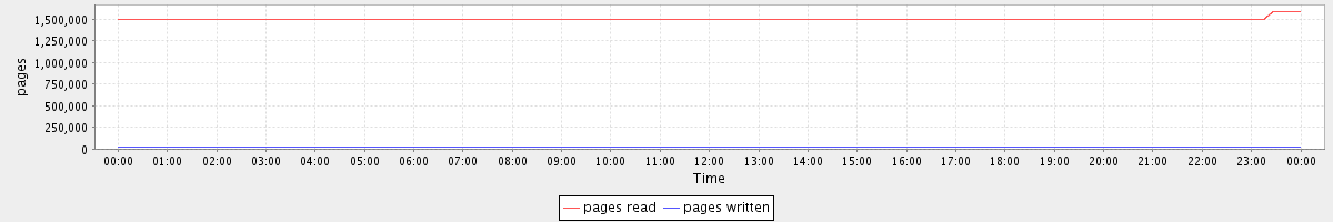 avg(pages read) = 1501876.19 avg(pages written) = 23678.40