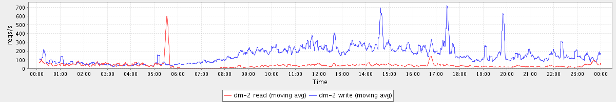 avg(dm-1 read) = 26.88 avg(dm-1 write) = 792.97