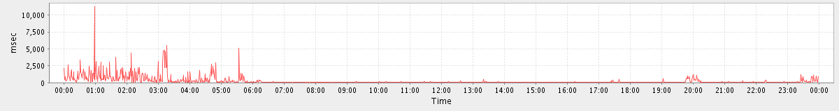 avg(SyncGalRequest) = 5591.95 avg(CancelAppointmentRequest) = 360.75 avg(BackupRequest) = 468912.00 avg(FolderActionRequest.empty) = 8206.28 avg(FolderActionRequest.sync) = 1231.50 avg(BackupQueryRequest) = 747.00 avg(CreateAppointmentExceptionRequest) = 312.00 avg(GetQuotaUsageRequest) = 3222.00 avg(ConvActionRequest.delete) = 1412.97 avg(SendMsgRequest) = 412.44