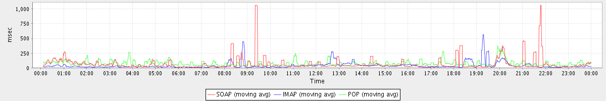 avg(IMAP) = 4.69 avg(IMAP SSL) = 783.22 avg(POP) = 0.04 avg(POP SSL) = 10.75