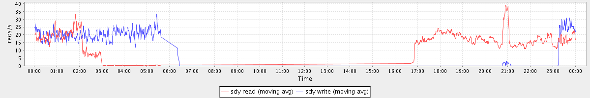 avg(sda read) = 2.30 avg(sda write) = 3.61