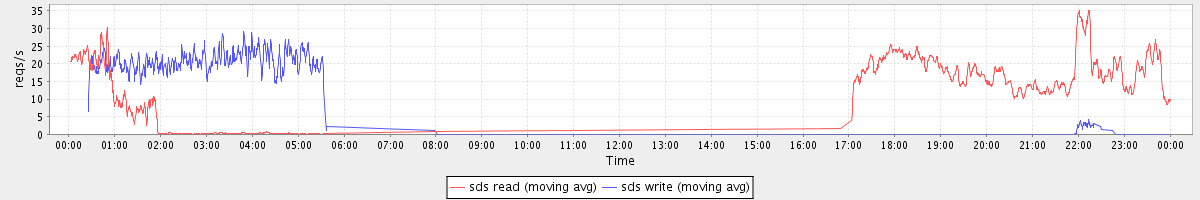 avg(sda read) = 23.97 avg(sda write) = 51.22