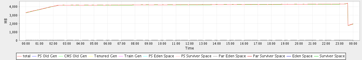 avg(total) = 4150.84 avg(PS Old Gen) = 0.00 avg(CMS Old Gen) = 4129.95 avg(Tenured Gen) = 0.00 avg(Train Gen) = 0.00 avg(PS Eden Space) = 0.00 avg(PS Survivor Space) = 0.00 avg(Par Eden Space) = 20.89 avg(Par Survivor Space) = 0.00 avg(Eden Space) = 0.00 avg(Survivor Space) = 0.00