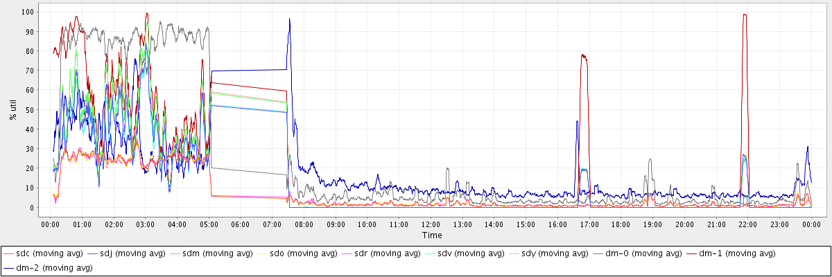 avg(sdc) = 6.64 avg(sdj) = 9.76 avg(sdm) = 11.06 avg(sdo) = 6.59 avg(sdr) = 6.59 avg(sdv) = 9.53 avg(sdy) = 10.12 avg(dm-0) = 22.88 avg(dm-1) = 15.64 avg(dm-2) = 15.54