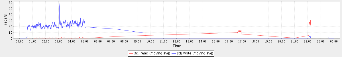 avg(sda read) = 1.07 avg(sda write) = 2.65