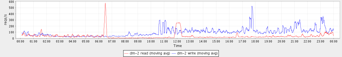 avg(dm-1 read) = 1540.10 avg(dm-1 write) = 3107.59