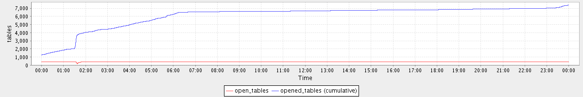 avg(open_tables) = 396.08 avg(opened_tables (cumulative)) = 6089.01