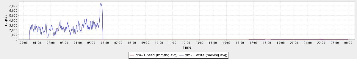 avg(dm-1 read) = 15.69 avg(dm-1 write) = 576.26