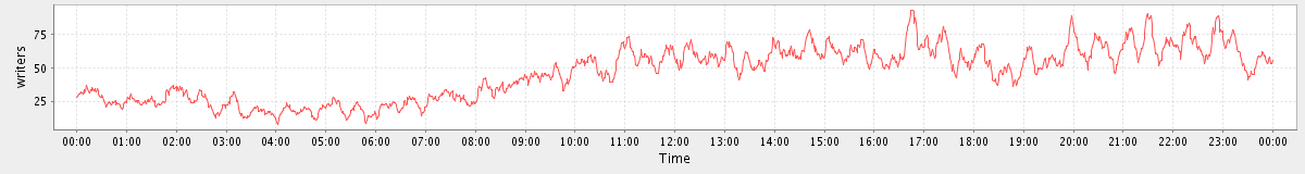 avg(processes waiting for run time) = 0.75 avg(processes waiting for io time) = 1.21 avg(load average (1 min)) = 2.10