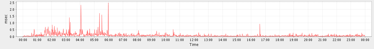 avg(SyncGalRequest) = 876.04 avg(BackupQueryRequest) = 471.40 avg(MaintainTablesRequest) = 285756.00 avg(GetQuotaUsageRequest) = 3337.00 avg(MsgActionRequest.spam) = 777.00 avg(ConvActionRequest.delete) = 633.79 avg(DeleteAccountRequest) = 152401.00 avg(BackupRequest) = 443170.00 avg(FolderActionRequest.empty) = 3306.12 avg(FolderActionRequest.sync) = 1803.50