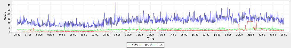 Host zm09.stanford.edu: Mailboxd: Request Rate by Client Protocol
