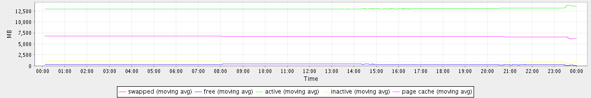 avg(swapped) = 0.25 avg(free) = 341.30 avg(active) = 12988.49 avg(inactive) = 1007.45 avg(page cache) = 6693.27