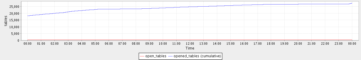 avg(open_tables) = 397.00 avg(opened_tables (cumulative)) = 24271.05