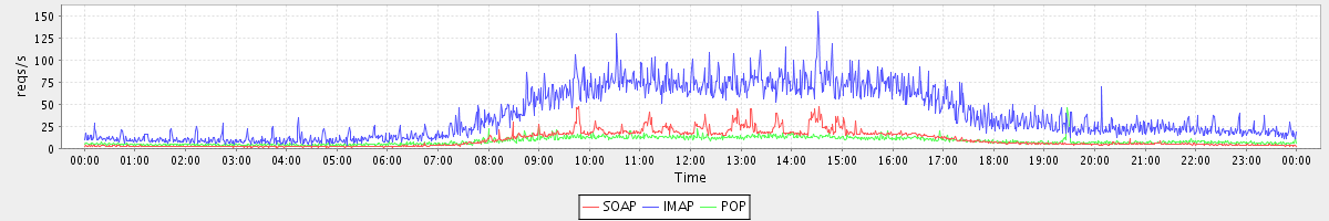 Host zm05.stanford.edu: Mailboxd: Request Rate by Client Protocol