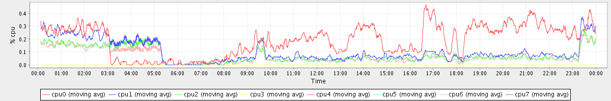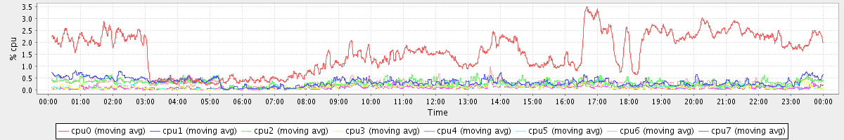 avg(cpu0) = 1.56 avg(cpu1) = 0.33 avg(cpu2) = 0.29 avg(cpu3) = 0.13 avg(cpu4) = 0.10 avg(cpu5) = 0.13 avg(cpu6) = 0.26 avg(cpu7) = 0.12
