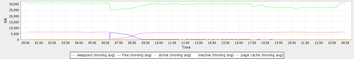 avg(swapped) = 0.25 avg(free) = 470.87 avg(active) = 29285.54 avg(inactive) = 1709.59 avg(page cache) = 5834.05
