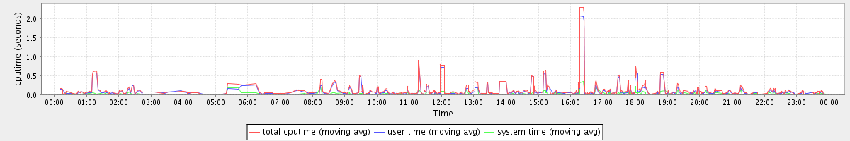 avg(total cputime) = 0.03 avg(user time) = 0.02 avg(system time) = 0.01