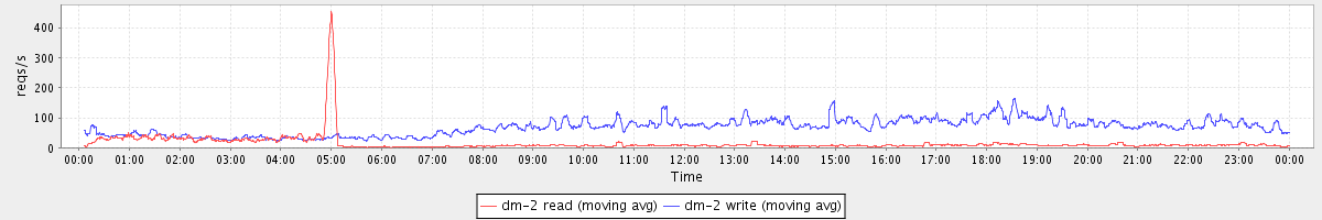 avg(dm-0 read) = 2185.44 avg(dm-0 write) = 103.03