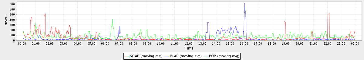 Host zm02.stanford.edu: Mailboxd: Response Time by Client Protocol