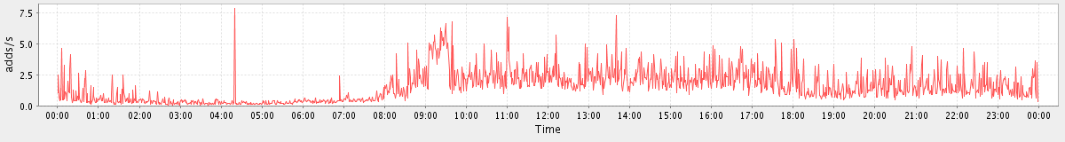 max(AddMsgRequest) = 244.00 max(SetAppointmentRequest) = 476.00 max(NoOpRequest) = 183.00 max(GetFolderRequest) = 510.00 max(SyncRequest) = 221.00 max(GetMsgRequest) = 2398.00 max(CreateContactRequest) = 558.00 max(GetAppointmentRequest) = 2280.00 max(GetContactsRequest) = 344.00 max(MsgActionRequest.delete) = 431.00