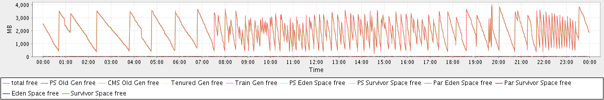 avg(total free) = 1976.01 avg(PS Old Gen free) = 0.00 avg(CMS Old Gen free) = 1954.80 avg(Tenured Gen free) = 0.00 avg(Train Gen free) = 0.00 avg(PS Eden Space free) = 0.00 avg(PS Survivor Space free) = 0.00 avg(Par Eden Space free) = 21.15 avg(Par Survivor Space free) = 0.06 avg(Eden Space free) = 0.00 avg(Survivor Space free) = 0.00