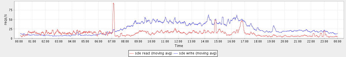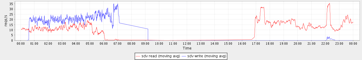 avg(sda1 read) = 34.48 avg(sda1 write) = 46.26