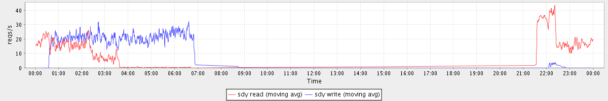 avg(sda1 read) = 25.18 avg(sda1 write) = 44.88