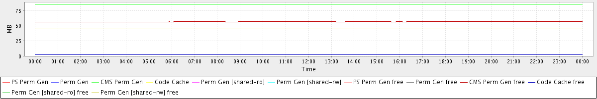 avg(PS Perm Gen) = 0.00 avg(Perm Gen) = 0.00 avg(CMS Perm Gen) = 84.62 avg(Code Cache) = 44.97 avg(Perm Gen [shared-ro]) = 0.00 avg(Perm Gen [shared-rw]) = 0.00 avg(PS Perm Gen free) = 0.00 avg(Perm Gen free) = 0.00 avg(CMS Perm Gen free) = 56.64 avg(Code Cache free) = 2.66 avg(Perm Gen [shared-ro] free) = 0.00 avg(Perm Gen [shared-rw] free) = 0.00