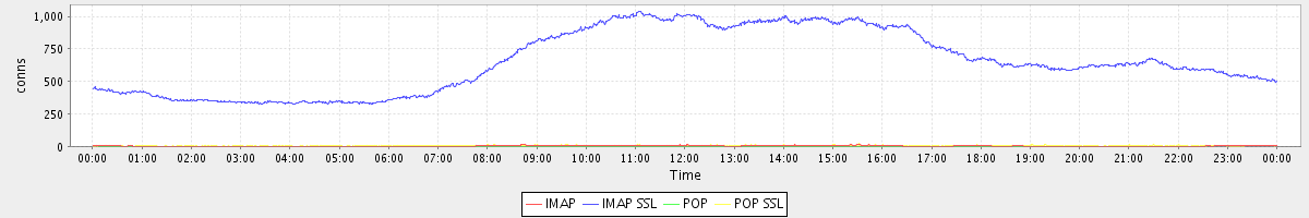 Host zm04.stanford.edu: Mailboxd: Active Connections by Client Protocol
