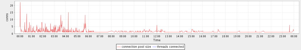 avg(connection pool size) = 0.82 avg(threads connected) = 0.00