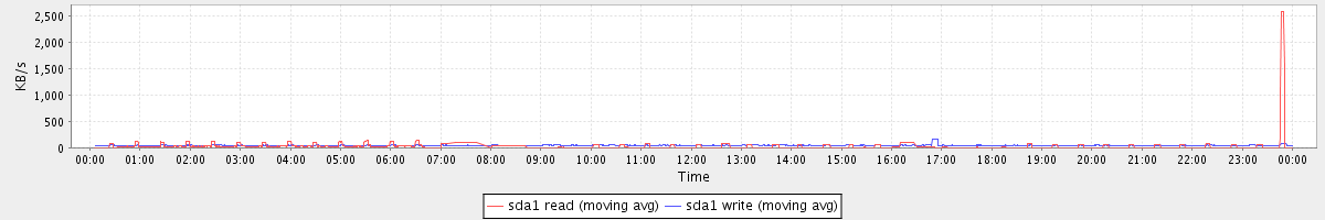 avg(sda1 read) = 25.24 avg(sda1 write) = 45.38