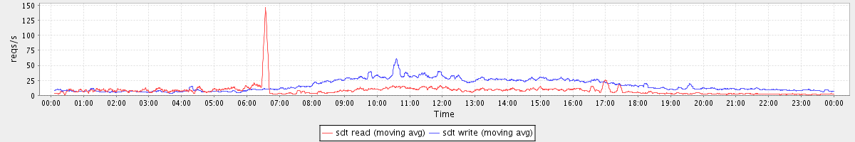 avg(sda2 read) = 0.58 avg(sda2 write) = 6.43