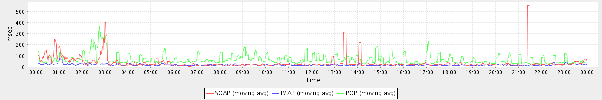 Host zm03.stanford.edu: Mailboxd: Response Time by Client Protocol