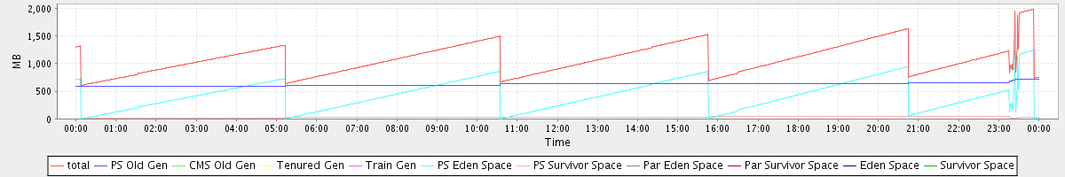 avg(total) = 1081.43 avg(PS Old Gen) = 627.18 avg(CMS Old Gen) = 0.00 avg(Tenured Gen) = 0.00 avg(Train Gen) = 0.00 avg(PS Eden Space) = 424.72 avg(PS Survivor Space) = 29.53 avg(Par Eden Space) = 0.00 avg(Par Survivor Space) = 0.00 avg(Eden Space) = 0.00 avg(Survivor Space) = 0.00