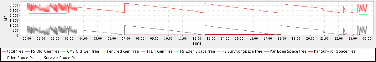 avg(total free) = 2689.16 avg(PS Old Gen free) = 0.00 avg(CMS Old Gen free) = 2152.37 avg(Tenured Gen free) = 0.00 avg(Train Gen free) = 0.00 avg(PS Eden Space free) = 0.00 avg(PS Survivor Space free) = 0.00 avg(Par Eden Space free) = 460.15 avg(Par Survivor Space free) = 76.64 avg(Eden Space free) = 0.00 avg(Survivor Space free) = 0.00
