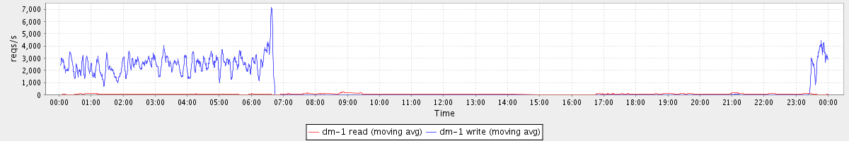 avg(dm-1 read) = 3413.33 avg(dm-1 write) = 3062.16