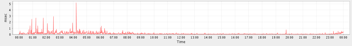 max(AuthRequest) = 234.00 max(SearchConvRequest) = 72.00 max(MsgActionRequest.move) = 331.00 max(NoOpRequest) = 205.00 max(GetFolderRequest) = 191.00 max(SyncRequest) = 199.00 max(GetMsgRequest) = 103.00 max(SearchRequest) = 315.00 max(GetInfoRequest) = 237.00 max(MsgActionRequest.delete) = 1392.00