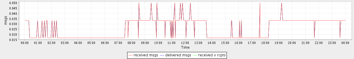 avg(received msgs) = 0.01 avg(delivered msgs) = 0.01 avg(received x rcpts) = 0.01