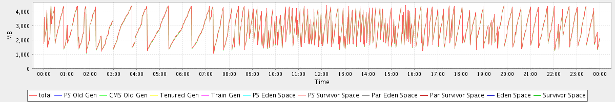 avg(total) = 2844.11 avg(PS Old Gen) = 0.00 avg(CMS Old Gen) = 2823.81 avg(Tenured Gen) = 0.00 avg(Train Gen) = 0.00 avg(PS Eden Space) = 0.00 avg(PS Survivor Space) = 0.00 avg(Par Eden Space) = 20.30 avg(Par Survivor Space) = 0.00 avg(Eden Space) = 0.00 avg(Survivor Space) = 0.00