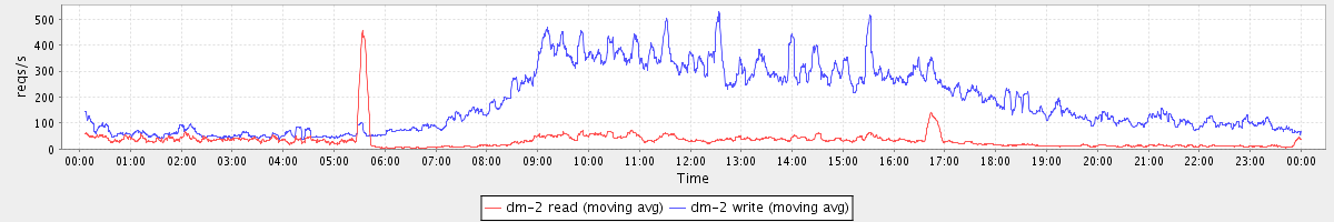 avg(dm-2 read) = 651.46 avg(dm-2 write) = 1037.16