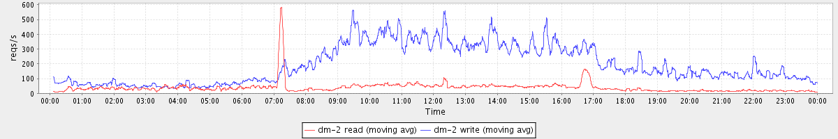 avg(dm-0 read) = 3078.19 avg(dm-0 write) = 413.79