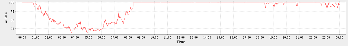 avg(connection pool size) = 0.91 avg(threads connected) = 0.00