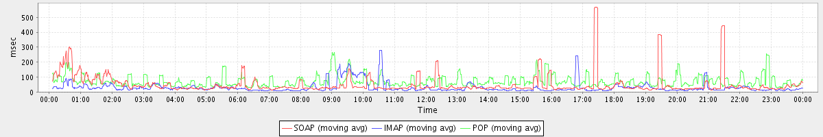 avg(IMAP) = 6.23 avg(IMAP SSL) = 844.73 avg(POP) = 0.10 avg(POP SSL) = 7.97
