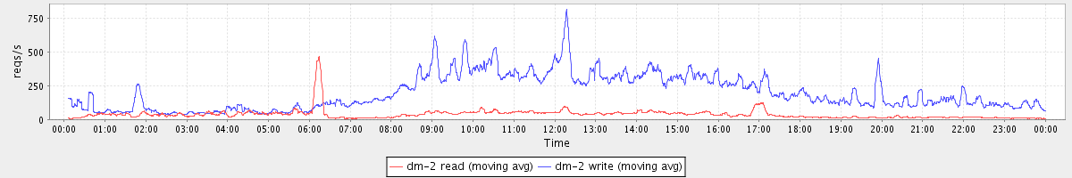avg(dm-1 read) = 25.90 avg(dm-1 write) = 734.97