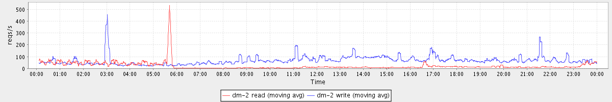 avg(dm-0 read) = 3095.10 avg(dm-0 write) = 185.43